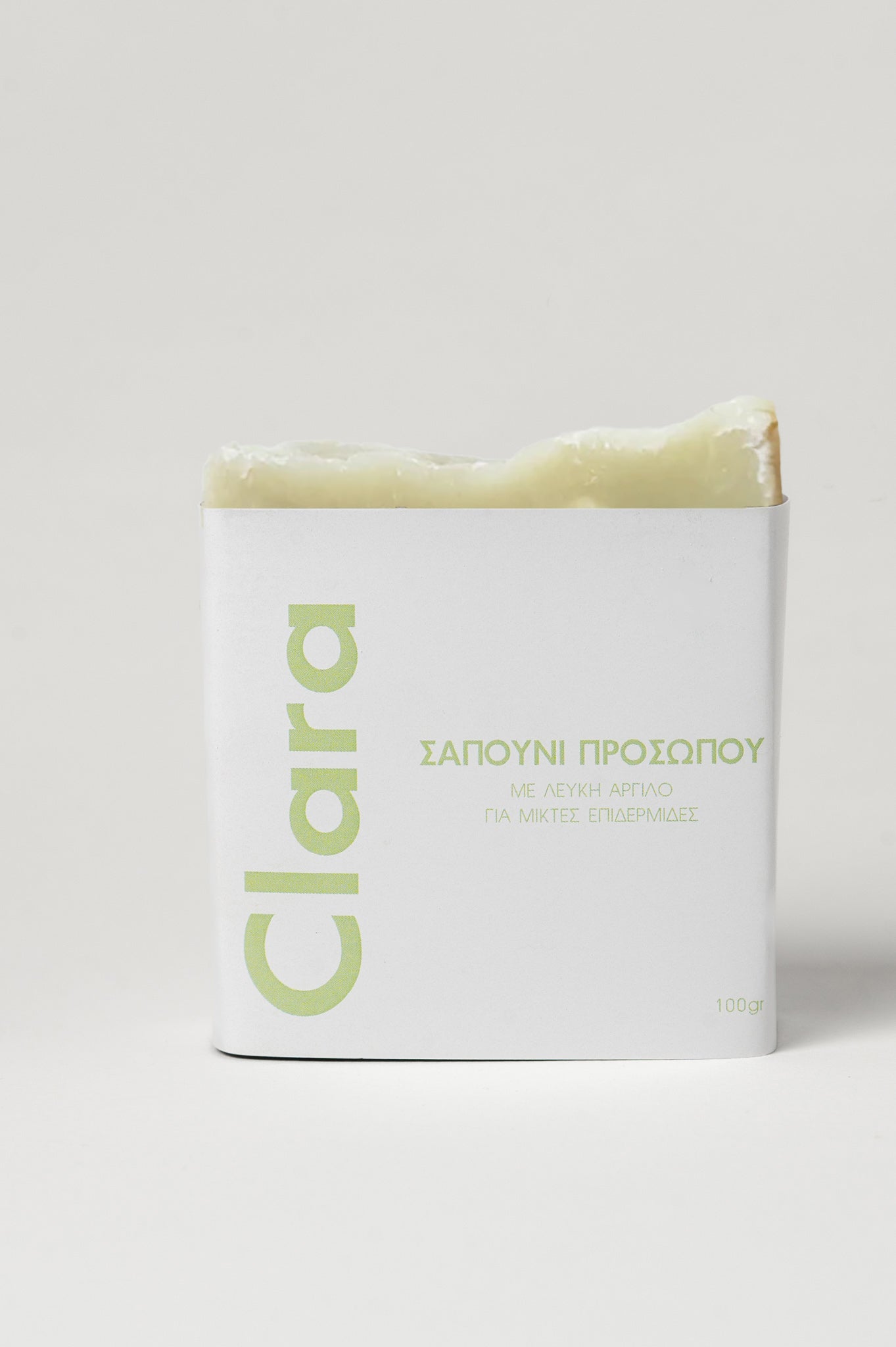 Σαπούνι προσώπου με λευκή άργιλο, ιδανικό για κανονική και ώριμη επιδερμίδα, χωρίς άρωμα.